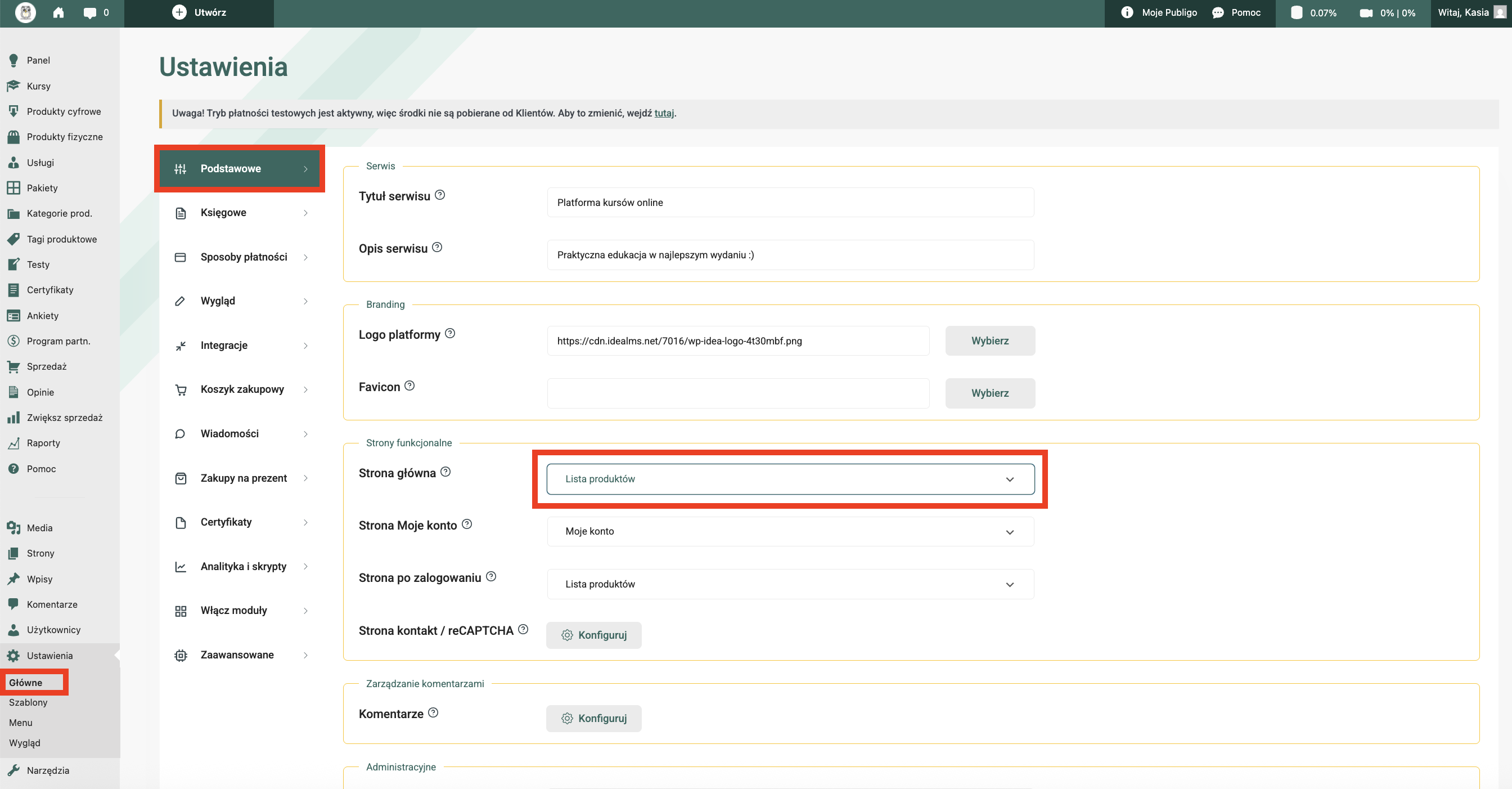 Czy można zmienić stronę główną na inną niż Lista kursów?