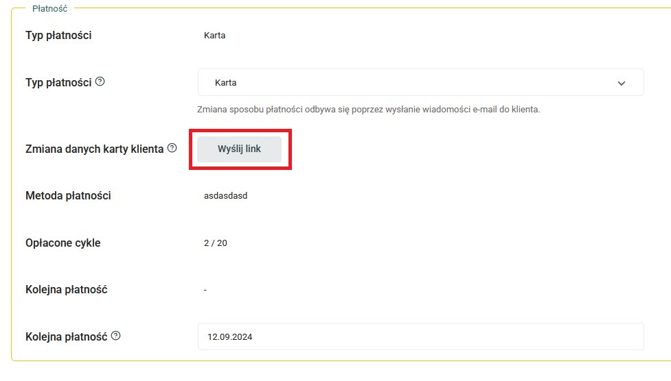 Jak wysłać link do zmiany płatności?